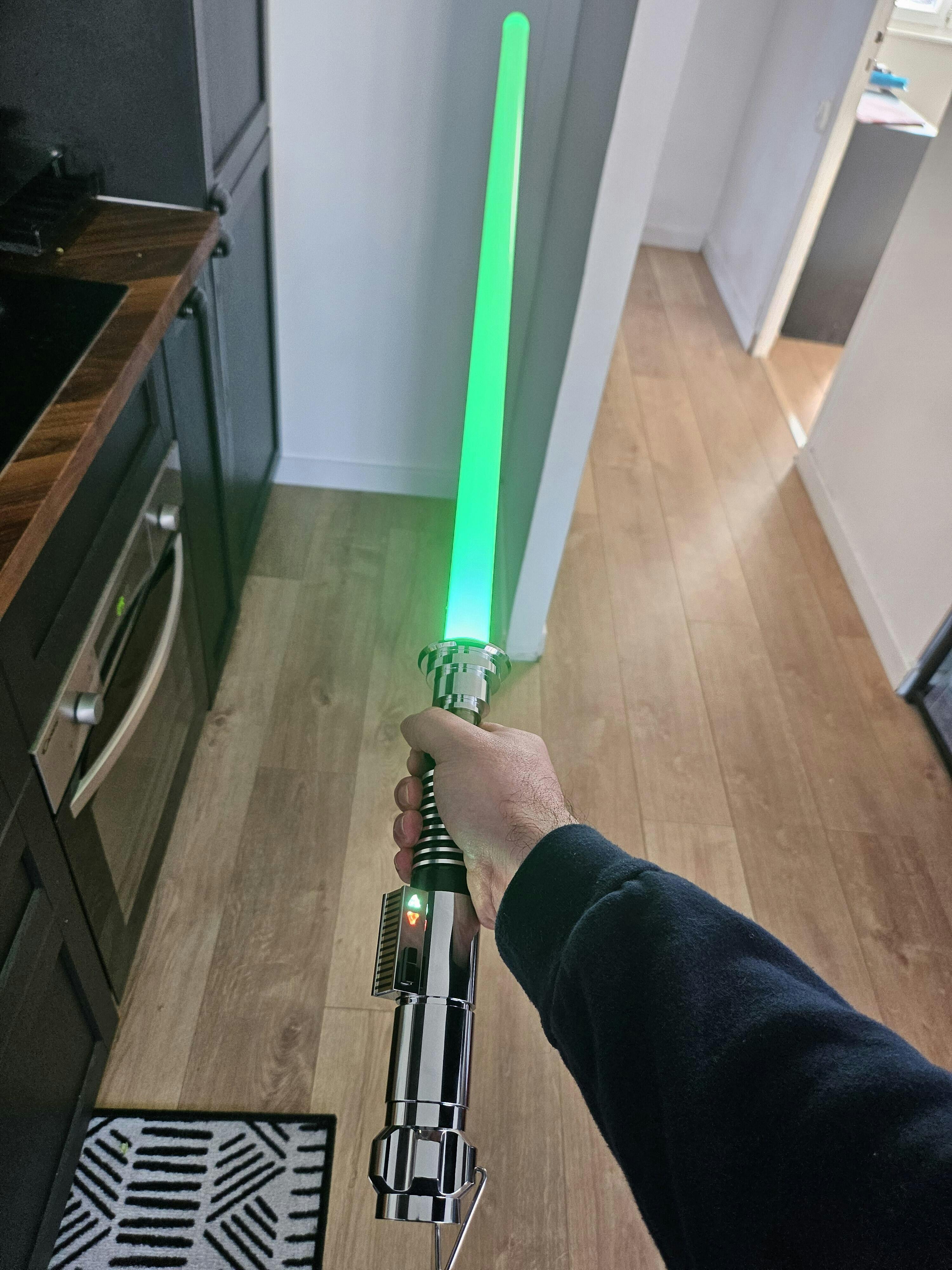 Allumez ou rangez le sabre en faisant tourner le manche.