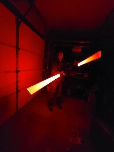 Behold the legendary double-bladed saber, a true masterpiece of design and craftsmanship. This extraordinary saber consists of two separate blades seamlessly joined by a special coupler. Each side operates independently, allowing you to choose different colors and sound fonts for unparalleled versatility.