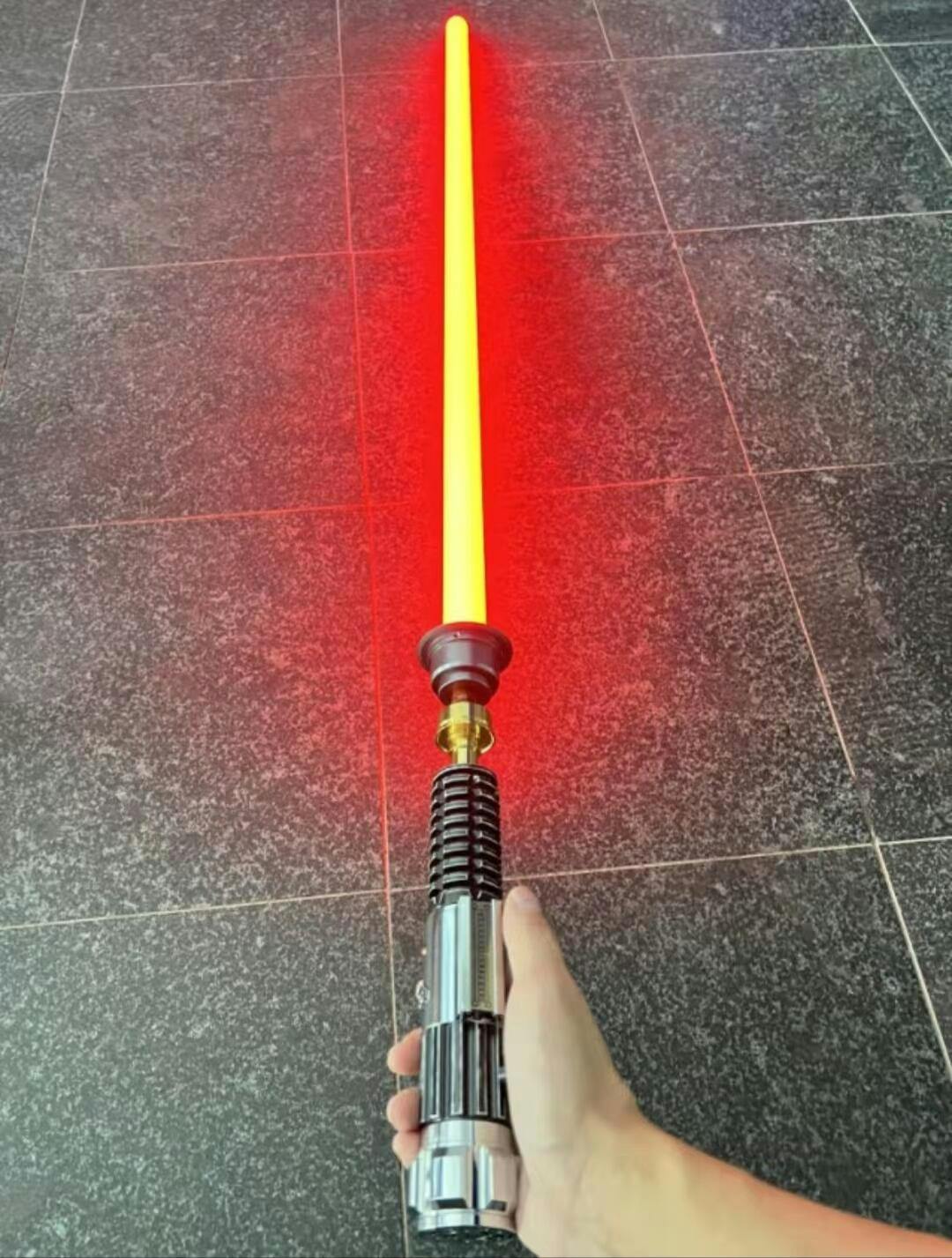 This Obi-Wan EP3 saber features a hilt design inspired by a legendary hero from a galactic saga. Its intricate craftsmanship brings a piece of the iconic saga right into your hands. Crafted from high-grade aluminum alloy, the handle undergoes a sophisticated electroplating process, ensuring a finish that is visually stunning and durable for long-term use. The grip includes four strategically placed screw holes in the swallowing part for a secure fit of the blade. The thin neck, a signature aspect of this saber design, is made from premium brass, adding a distinctive contrast and authentic feel.